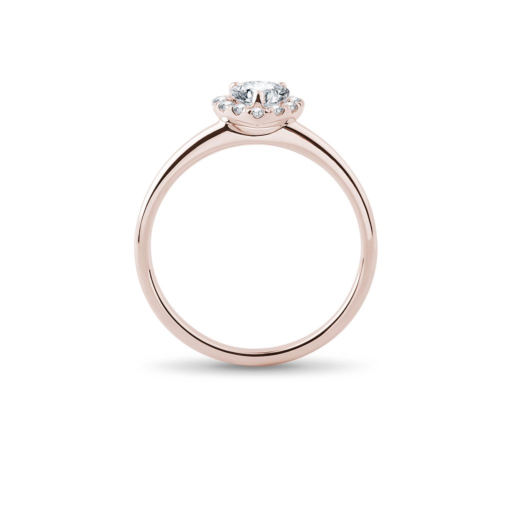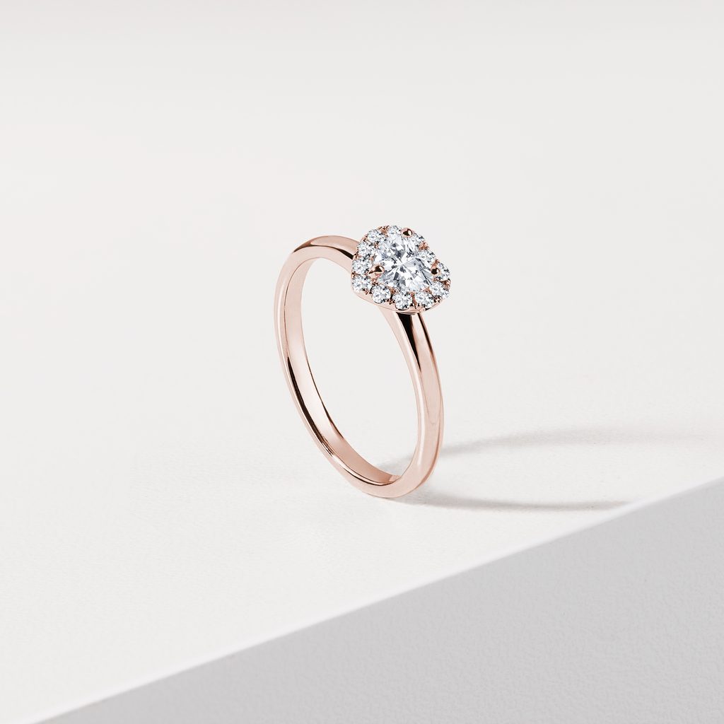 Cette bague en or rose 14 carats vous séduira par son motif romantique, orné d'un diamant de 0,3 carat taillé en forme de cœur. Le délicat sertissage de diamants clairs autour de la pierre principale sublime son éclat. D'une douceur et d'une originalité remarquables, cette bague est un magnifique symbole d'amour. Elle sera idéale comme bague de fiançailles ou comme cadeau pour un anniversaire important.