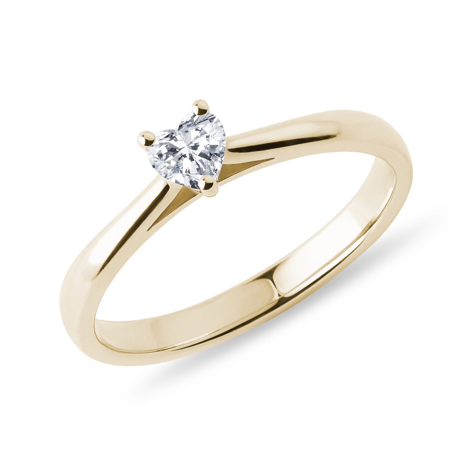 Cette bague en or jaune 14 carats, à la forme originale, est ornée d'un diamant en forme de cœur. Grâce à sa monture légèrement resserrée, son éclat et sa forme sont sublimés, et elle est très douce au toucher. Cette bague est un excellent choix comme cadeau d'amour pour la Saint-Valentin, un anniversaire ou tout autre moment spécial, ou comme bague de promesse.