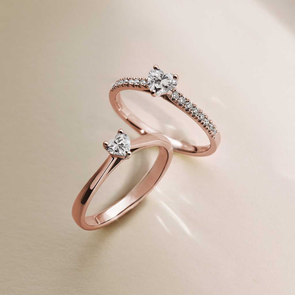 Cette bague en or rose 14 carats est ornée d'un diamant taille cœur de 0,3 carat, délicatement mis en valeur par de petits diamants taille brillant sur le pourtour de l'anneau. D'une beauté à la fois douce et romantique, elle se distingue par l'éclat naturel des diamants. Idéale pour déclarer sa flamme, elle fera également une magnifique bague de fiançailles, un bijou qu'on aura plaisir à porter au quotidien.