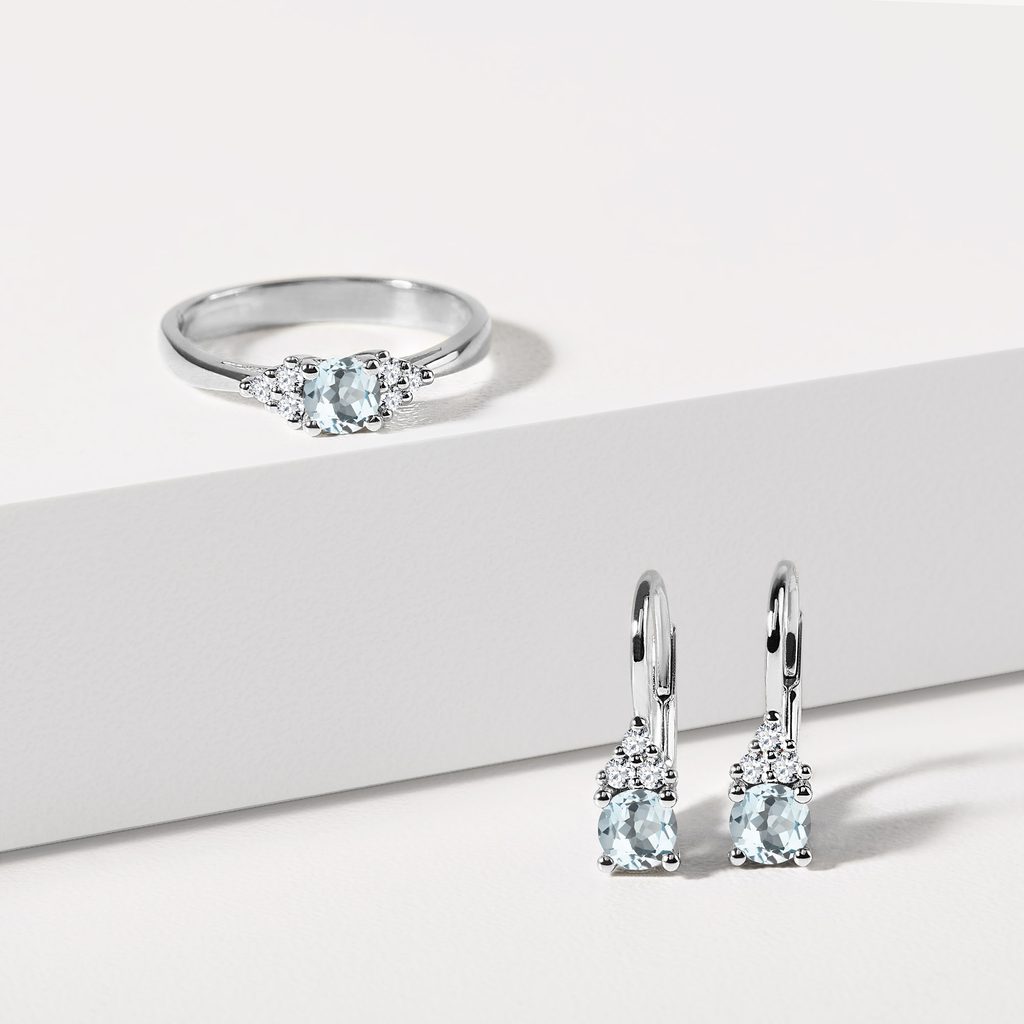 Boucles d'oreilles avec aigue-marine et diamants en or blanc