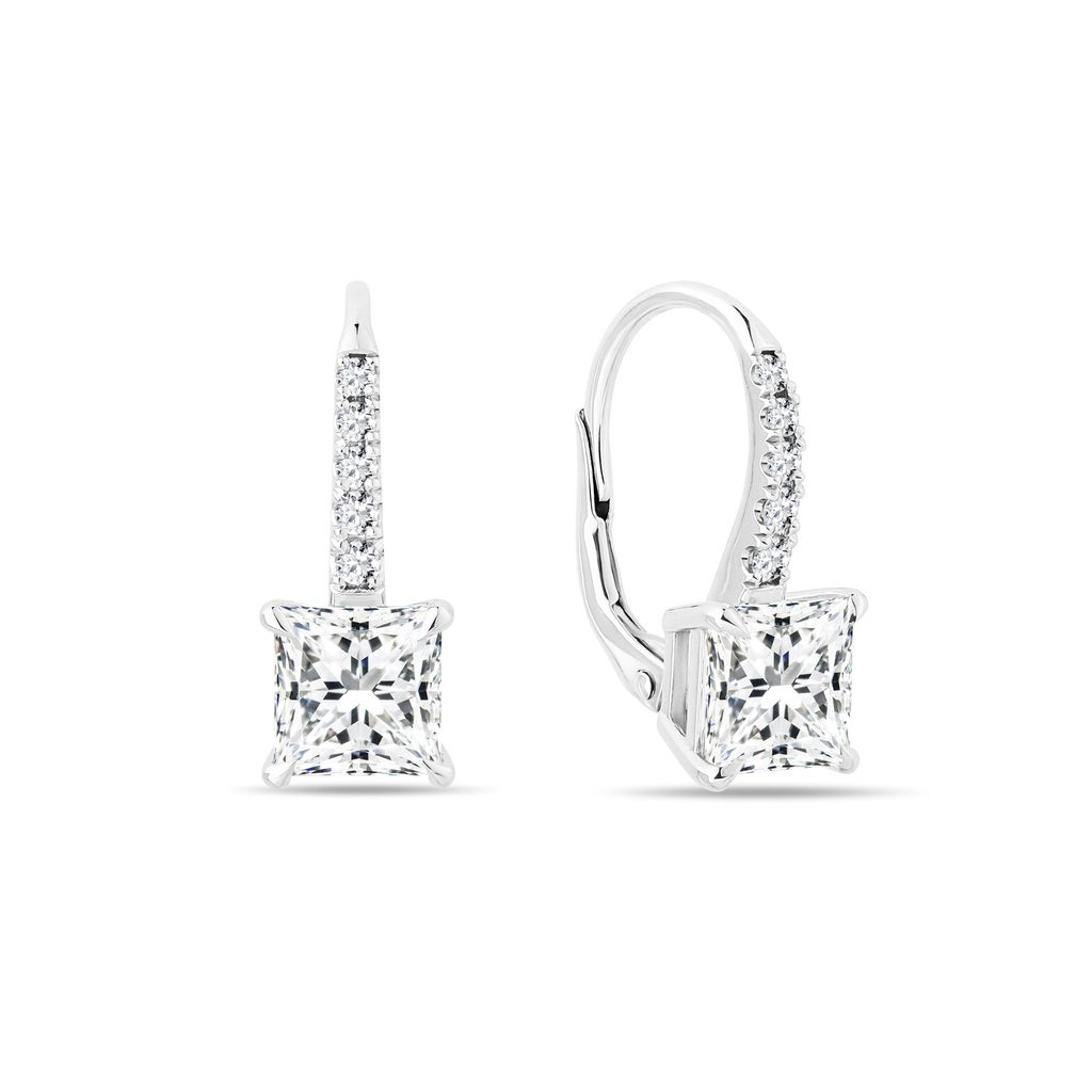 Boucles d'oreilles de luxe en or blanc 14 carats ornées de diamants dans une taille princesse et d'un poids total de 2,6 carats. Le design classique de cette pierre solitaire fait ressortir magnifiquement la pierre, tandis que l'éclat éblouissant des diamants sertis au-dessus accentue son caractère luxueux. La précision du facettage de la taille princesse crée un accessoire intemporel qui convient aussi bien au quotidien qu'aux occasions spéciales.