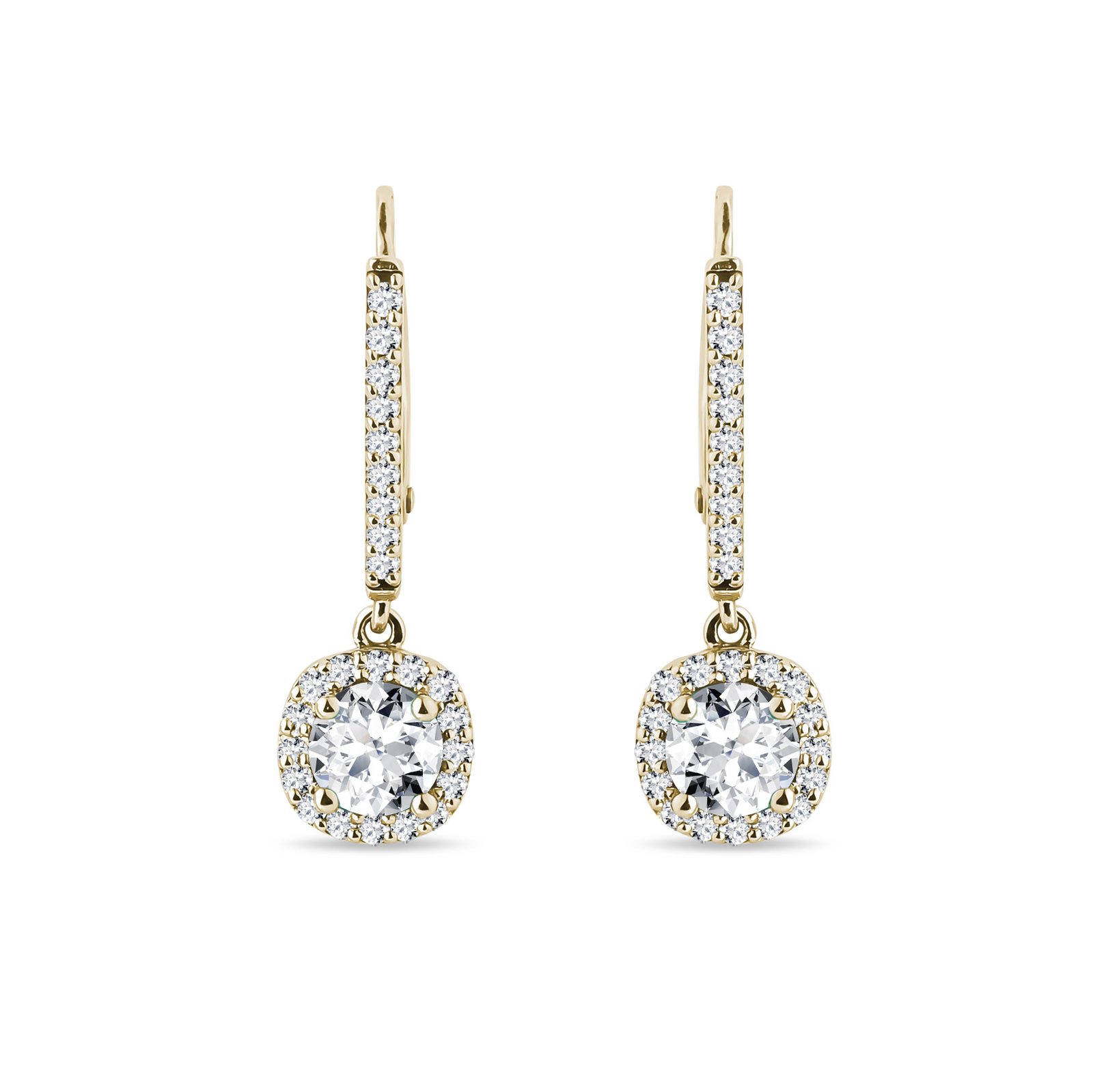 Boucles d'oreilles halo pendantes en or jaune et diamants