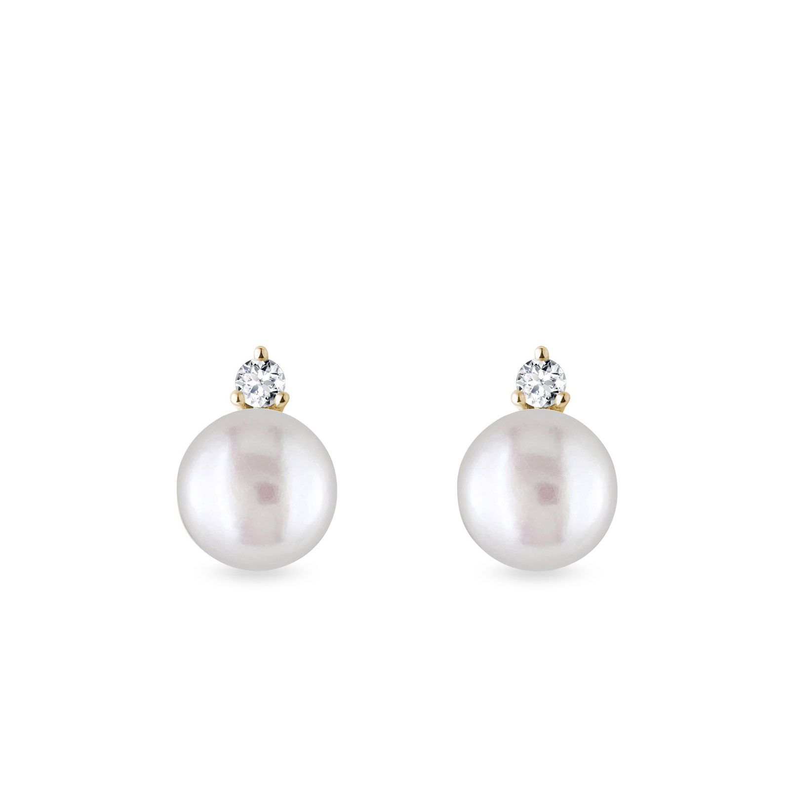 Puces d'oreilles en or jaune 14k ornées de perles d'eau douce blanches et de diamants clairs. C'est un accessoire intemporel qui convient à toutes les femmes quel que soit leur âge, la longueur et la couleur des cheveux ou le style. Vous pouvez porter ces boucles d'oreilles au quotidien ou pour des occasions spéciales.