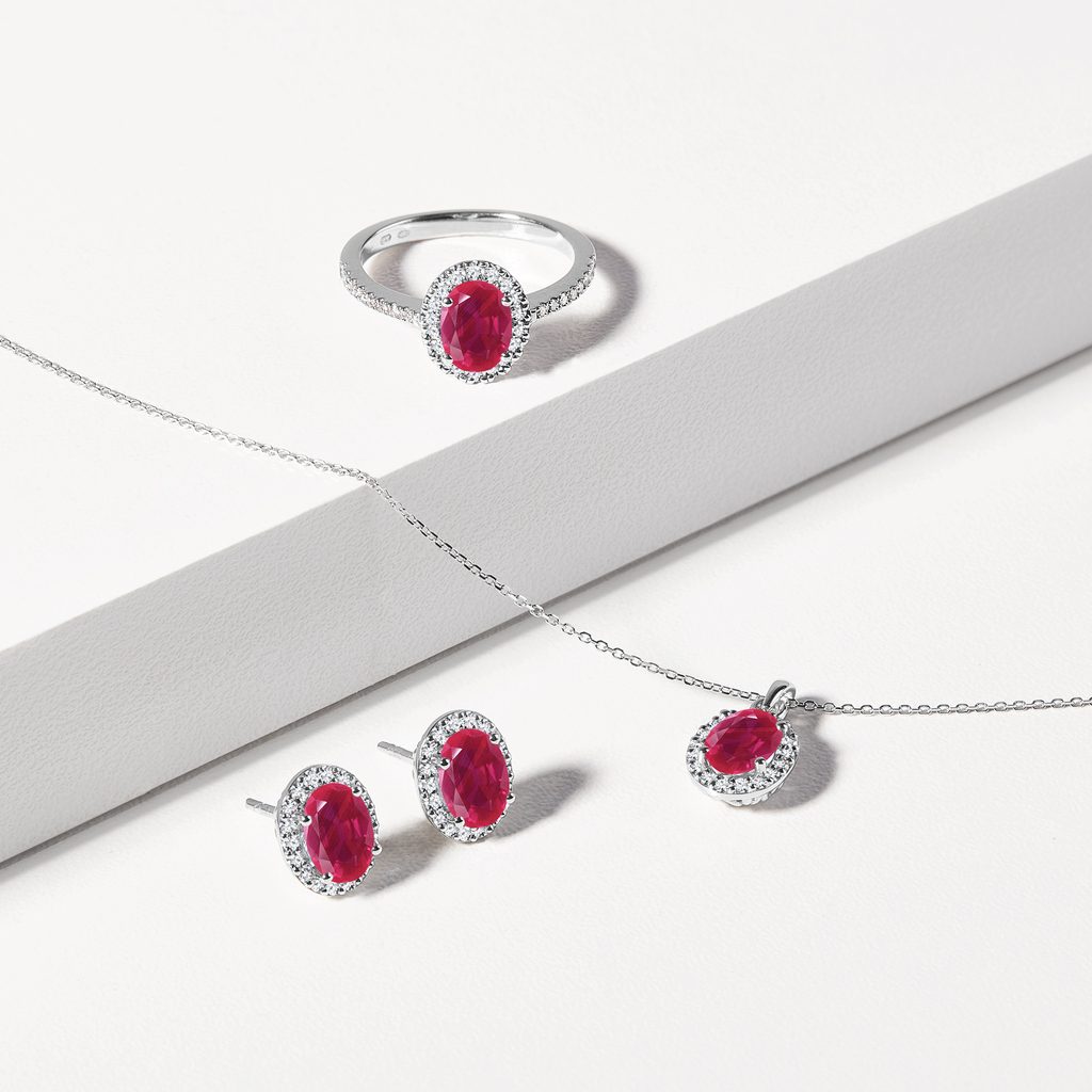 Boucles d'oreilles ovales avec rubis et diamants en or blanc