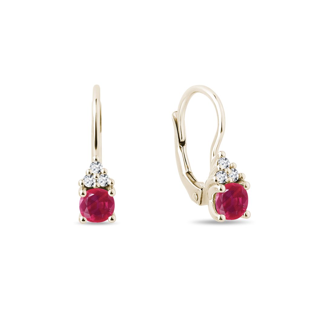 Boucles d'oreilles pendantes avec rubis et diamants en or