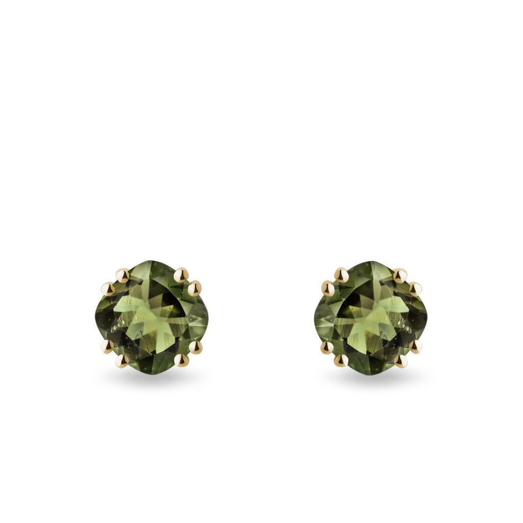 Boucles d'oreilles en or jaune et moldavites