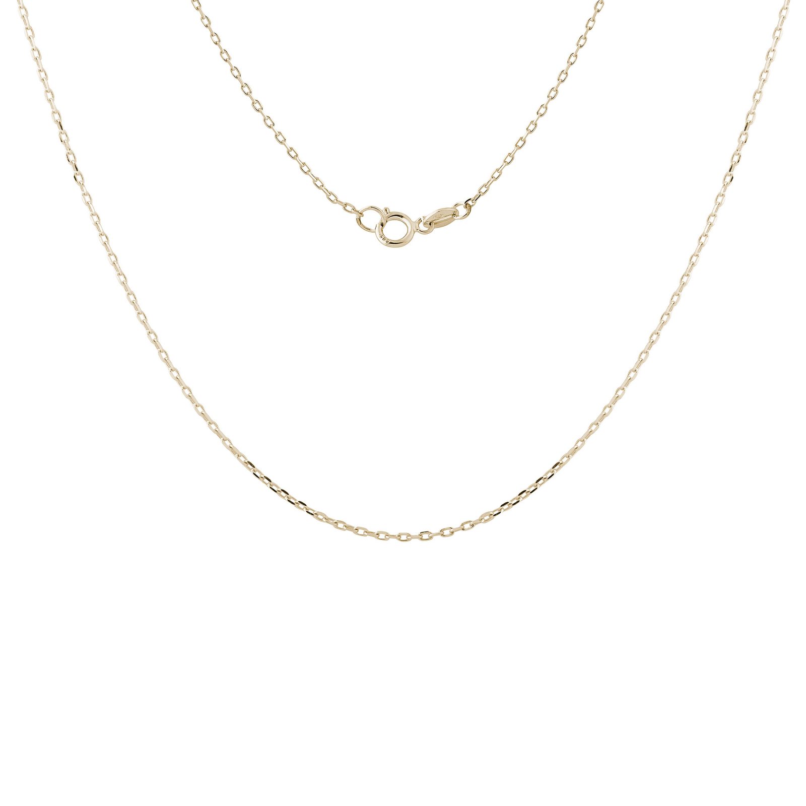Chaîne maille forçat en or jaune 14 carats. Les anneaux plats et polis reflètent magnifiquement la lumière et scintillent délicatement. La maille forçat est l'un des types de chaînes les plus solides.