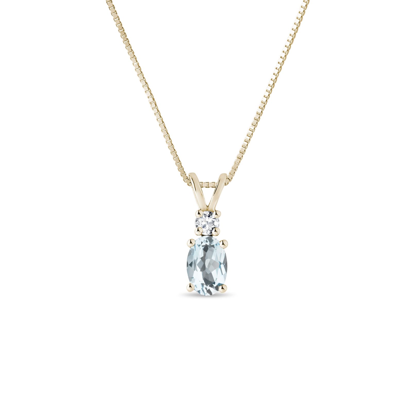 Ce délicat collier en or jaune 14 carats est orné d'un élégant pendentif avec une aigue-marine ovale de couleur bleu ciel, complétée par un petit diamant. La pierre est sertie dans une monture à quatre griffes qui permet à la beauté naturelle de la pierre précieuse de magnifiquement ressortir. Un accessoire élégant et intemporel qui convient aussi bien au quotidien qu'aux occasions spéciales.