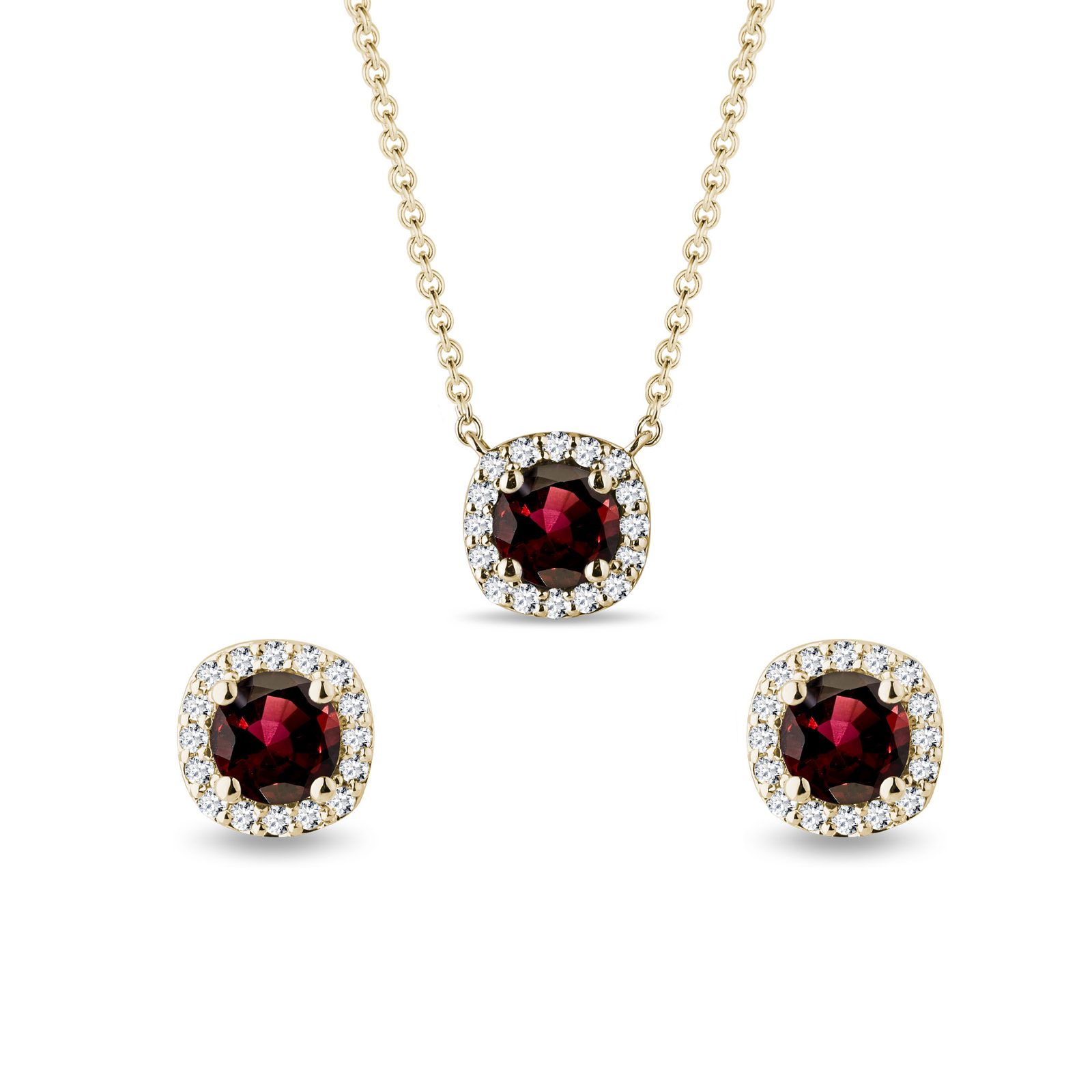 Ensemble de bijoux en or jaune avec grenats et diamants