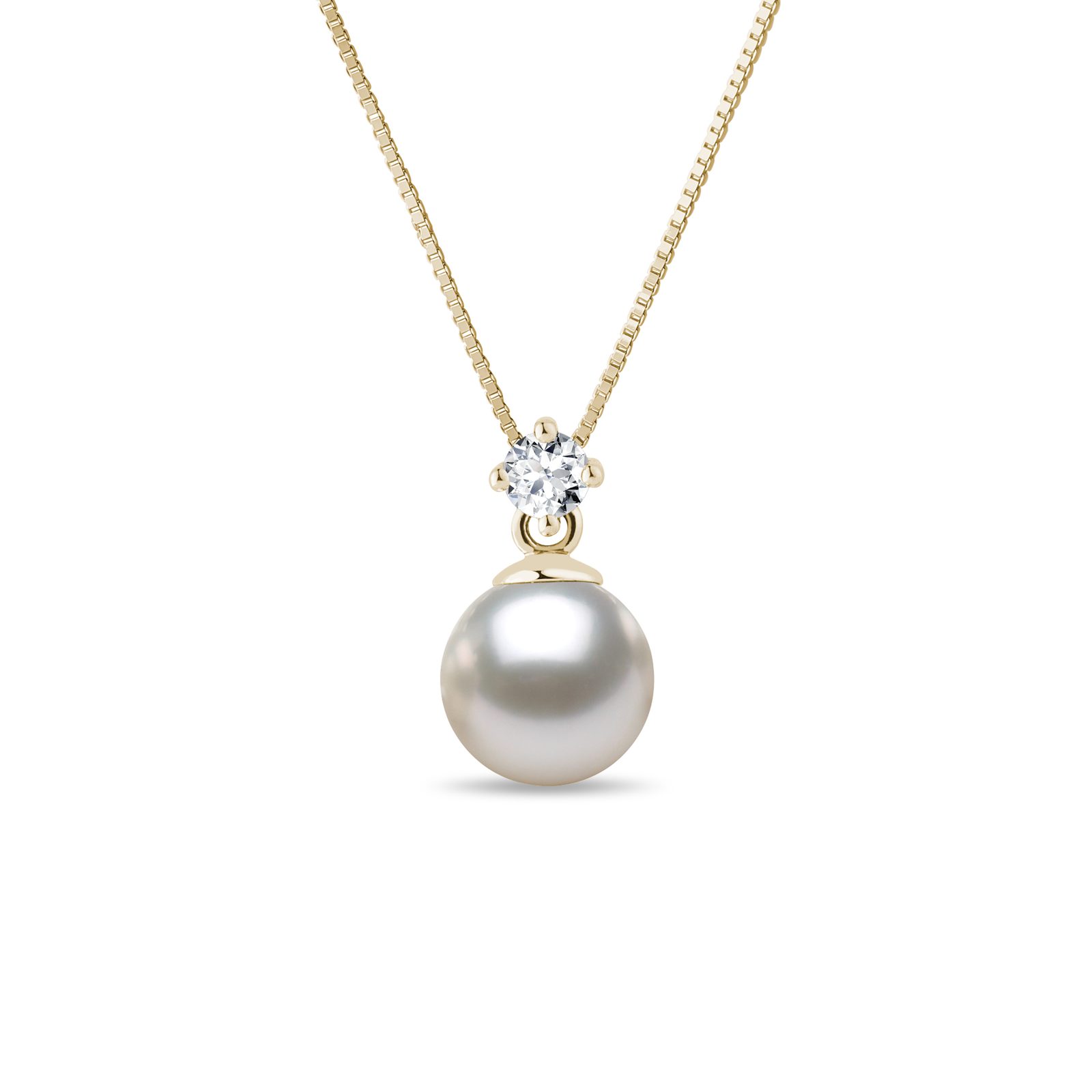 Collier en or jaune 14 carats avec perle Akoya et diamant. Une pièce somptueuse qui consiste une chaîne Venezia au bout de laquelle est placée une perle Akoya surmontée et complémentée par son diamant de coupe brillant rond. Ce bijou au charme intemporel se prêtera à être offert lors d'une multitude d'occasions romantiques.