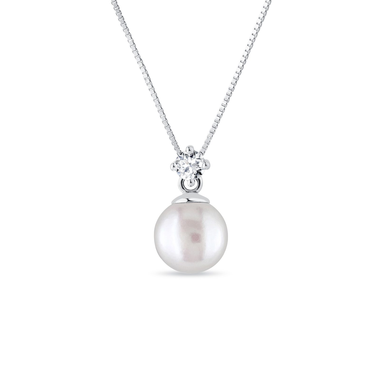 Élégant collier en or blanc 14ct, orné d'une perle d'eau douce blanche et d'un diamant taille brillant. Ce bijou est idéal comme cadeau pour une occasion spéciale et il ne ravira pas seulement les amatrices de nacres. Le pendentif est délivré avec une chaîne venezia.